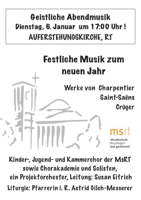 Zu Gast ist die Musikschule der VHS Reutlingen mit ihrem Kinder- und Jugendchor, dem Kammerchor, mit der Chorakademie sowie Solistinnen und Solisten der klassischen Gesangsklassen sowie einem Projektorchester, das vorwiegend aus Lehrkräften der Musikschule Reutlingen besteht.